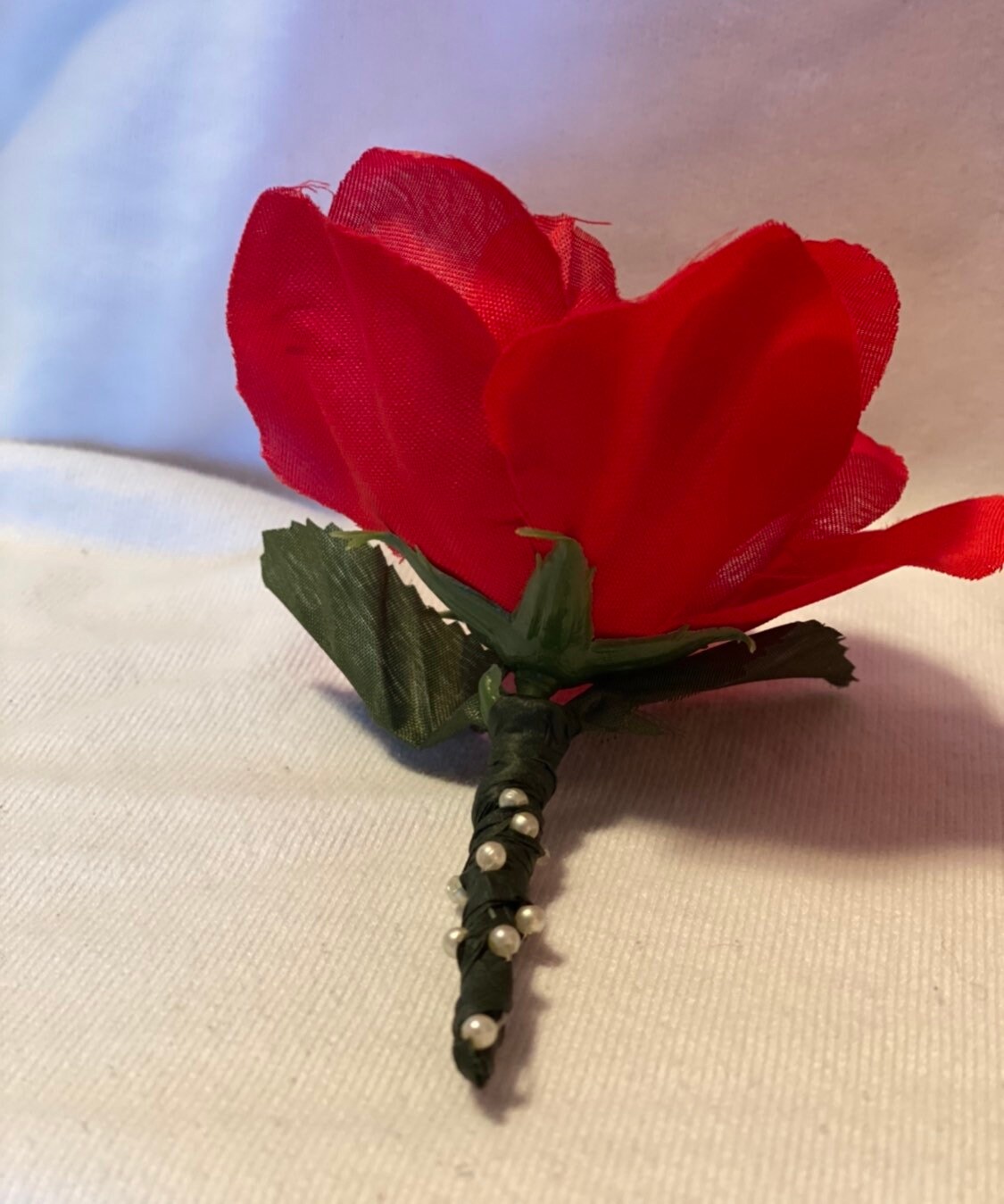 Set Of 6 Red Rose Boutonniere With Pearl Accents Etsy